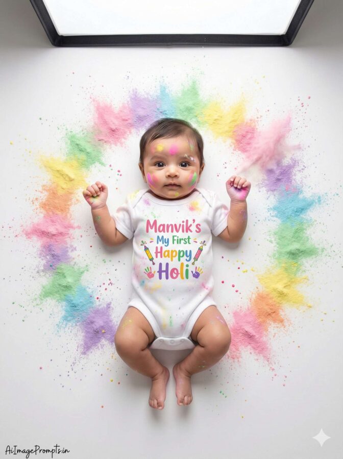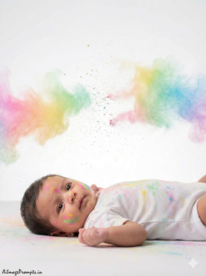 If you’re planning your little one’s first Holi photoshoot, here are fresh, adorable, and creative prompt ideas perfect for a colorful celebration—especially if you’re shooting in India.