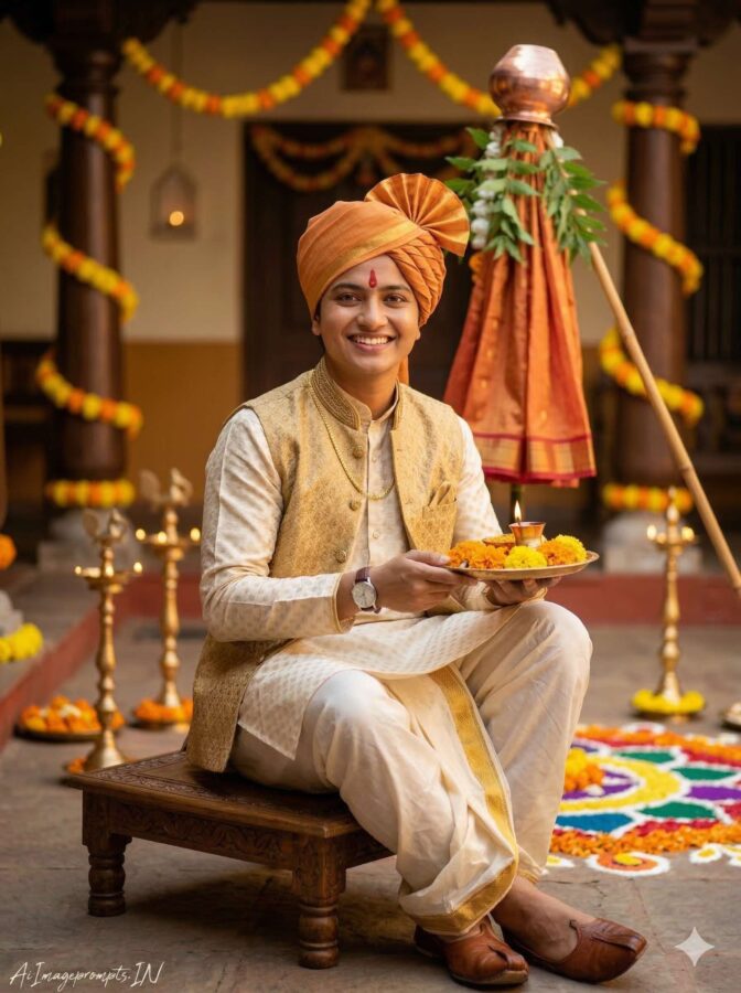 Celebrate Gudi Padwa with creative AI photo editing prompts. Generate beautiful traditional Maharashtrian festival photos using AI tools in seconds.