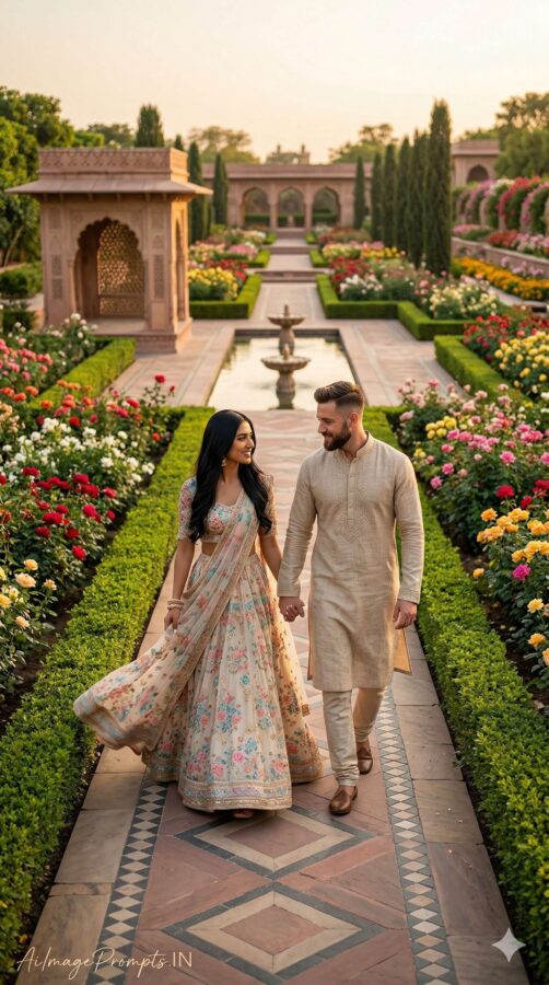Mughal Garden Pre-Wedding Photoshoot Prompt (Gemini AI Style)